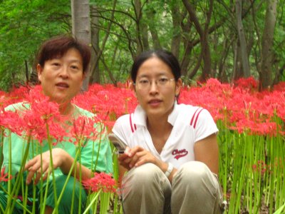 어무이랑 막내동생이 꽃밭에서 찰칵!