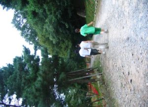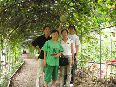 절로 올라가는 입구에 만들어놓은 강낭콩, 머루, 조롱박 터널안에서 어무이랑 동생들이랑 찰칵.