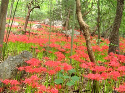 절 뒤편의 산책로로 들어서면 이처럼 상사화가 무리지어 피어있는 장관을 볼 수 있다.