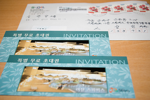 점심 먹고 들어오니 등기 찾아가라는 경숙씨 쪽지에 가보니 이게 있더라. 사진 받은 아저씨가 보내온 온천 이용권 두장. 익일 특급 우편으로 보내셨더군. 음… 이걸 언제 쓸까나. 일단 받긴 받았는데… 난감하군.