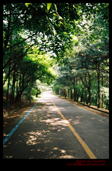 이렇게 도로가 나 있지만 차가 다니지 않는다. 이 길을 따라 죽 걸으면 된다.