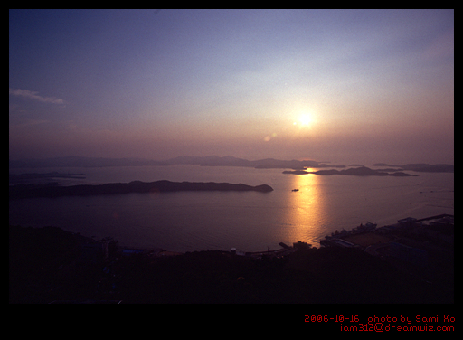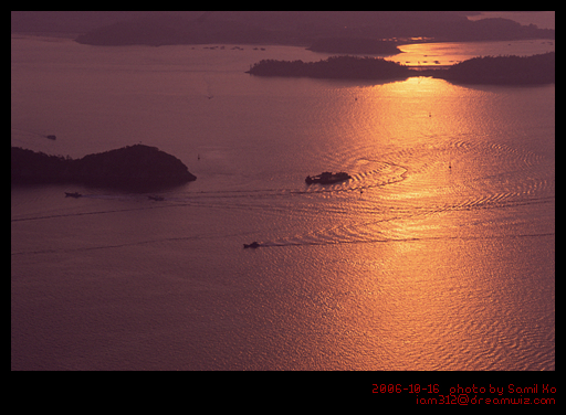 섬이 많아 수평선으로 해가 떨어지는 모습은 볼 수 없다. 이날은 수평선 부근에 구름까지 끼어서 좀 아쉬웠다.