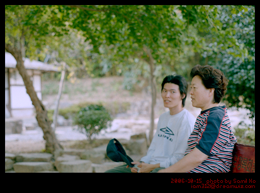 삼각대 세워서 타이머 돌려놓고 찍은 사진인데, 언제 찍히는지 타이밍을 몰라서 다들 딴 짓이다. 어렸을적에 놀러갔을 때 가족사진은 항상 아버지의 사진기 몫이었다. 나이 드시고 이런것까지 조금씩 그 몫을 자식들에게 물려주는 부모님을 보니 짠하다. 물론 아버지의 필름 사진기는 지금도 아버지가 가끔 가지고 나가서 찍으신다고 한다. 다만, 어이없이 큰 사이즈로 인화를 하겠다고 어머니께 큰 돈을 달라고 하시는 바람에 잔소리를 많이 듣는다고 하시는 군.