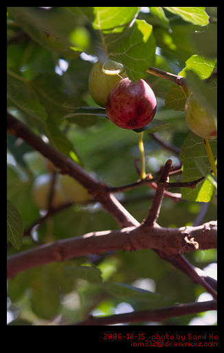 무화과라고 들어본적이 있는지? 전라도 특히, 해남 무안 지역에서 많이 나는 과일이다. 열매안에 꽃이 들어 있다. 무척 맛이 좋다. 올해는 포도와 감이 안열었다고 아버지가 아쉬워 하셨다. 작년엔 감이 많이 열었으니 올해는 좀 쉬어야지. 조그만 화단에 양분이 있으면 얼마나 있겠는가.