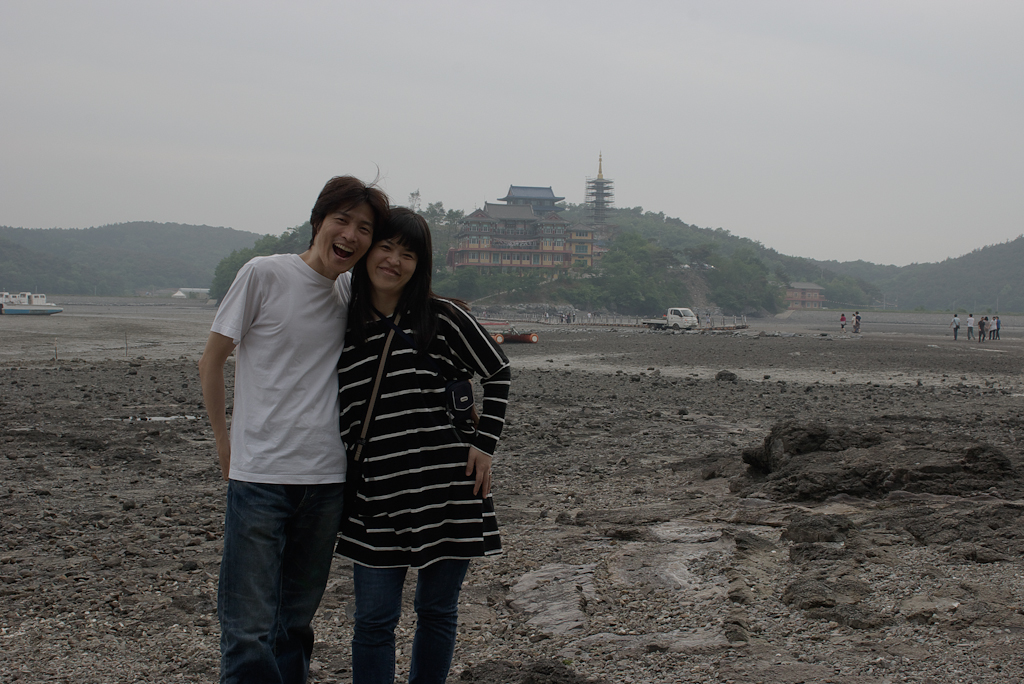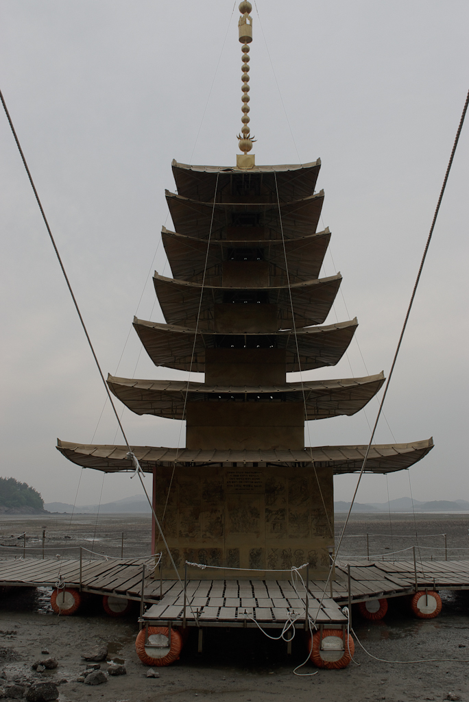뒤로 보이는 것이 안면암. 우리나라 절 같지 않고, 꼭 중국의 어디 절 같이 생겼다. 게다가 가까이서 보면 시멘트로 지은 절이다. 사실 저 절은 그닥 볼게 없고, 부교로 연결된 이 섬이 볼거리다. 가는 길에, 갯벌에 사는 게며, 망둥어, 고동등을 보는 재미가 쏠쏠하다.