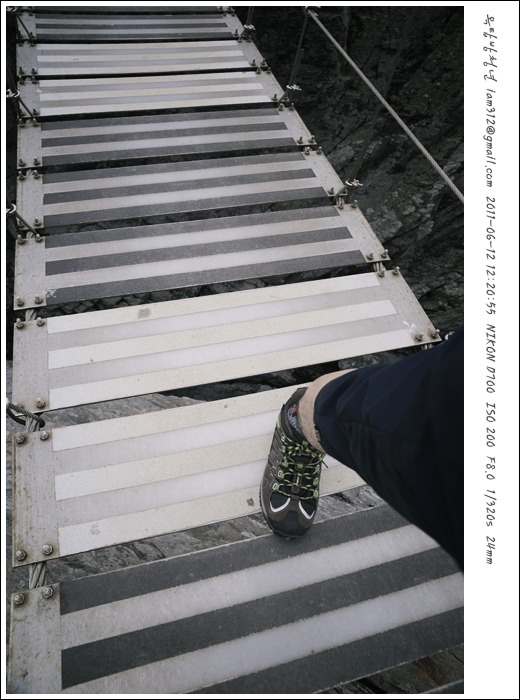 노파인더 샷이다. 한손으로는 줄을 잡고 한손으로는 사진기를 쥐고 걸어가면서 셧터를 눌렀다. 염통이 쫄깃해져서 뷰파인더 들여다 볼 여유가 없었다. 발걸음을 뗄떼마다 구름다리가 출렁이거든…