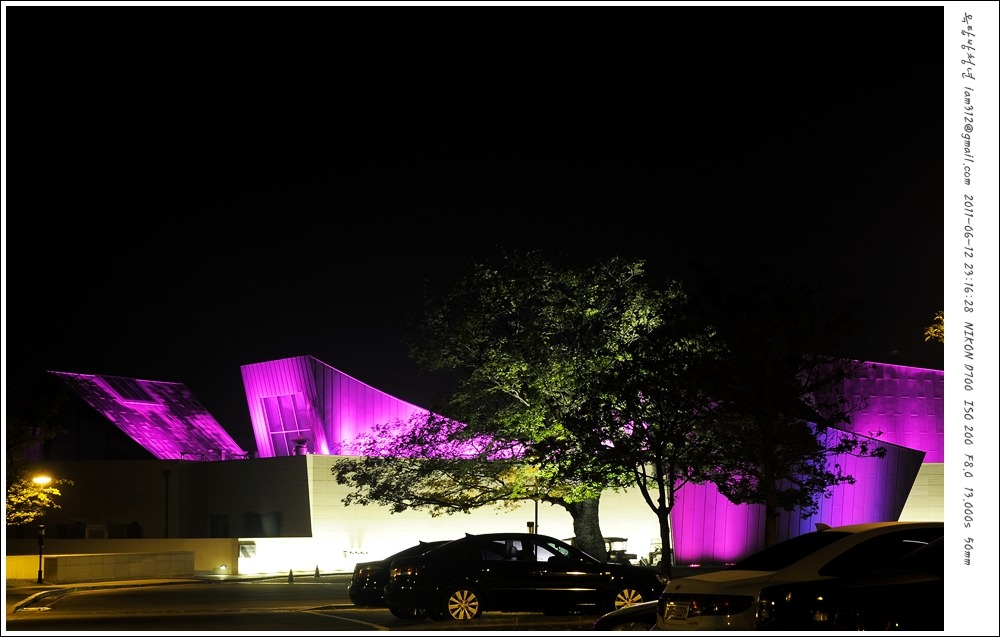 머물렀던 숙소 주차장 옆 조명이 시시각각 요상한 색으로 변하는게 예뻐서 찍었는데, 나중에 보니 이런, 이건 좀 괴기스럽네…