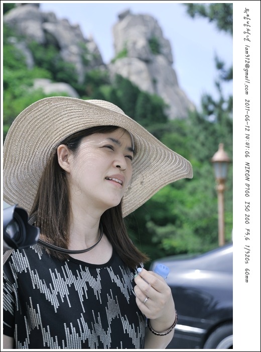 보리암 가는 길목 오르막 정상에서 포즈 취해주신 마나님. 무척 더운 날이었다.