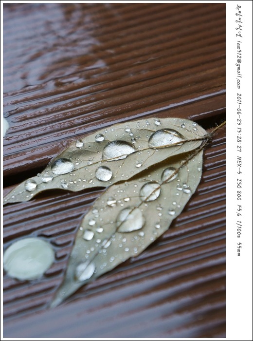 점심 먹고 산책을 나서는데 비도 오고 해서 마나님 사진기를 들고 나갔다. 비오는 날이 의외로 찍을게 많거든… 빗방울이 고여서 이런저런 볼만한걸 많이 만들어 준다.