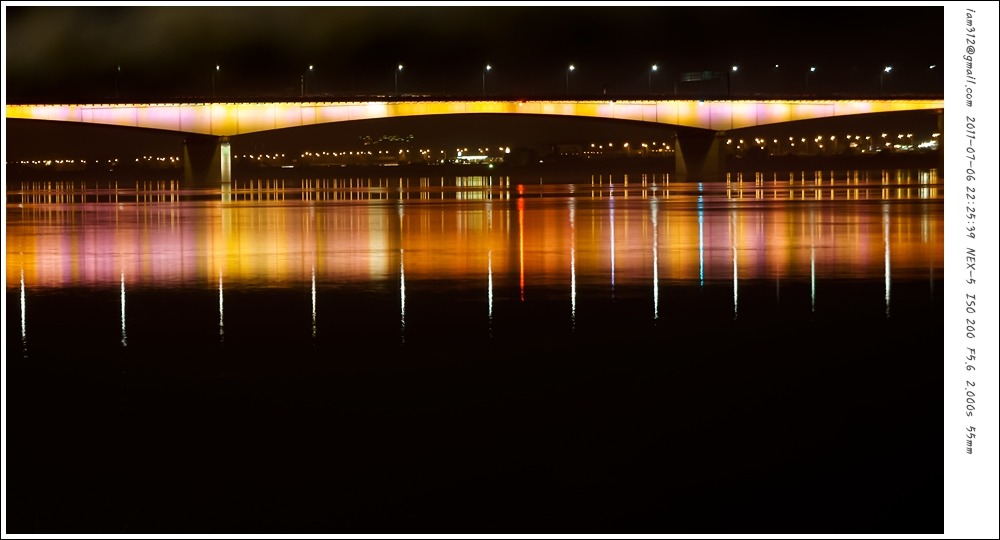 야근을 하고 집에 가는 길에 만난 가양대교 조명이 마치 물총처럼 떨어지던 풍경. 에너지 절약 한다고 다 끈다고 하더니 기간이 끝난건가… 조리개좀 더 조여서 빛갈라짐이 나왔으면 더 좋았을 것을.