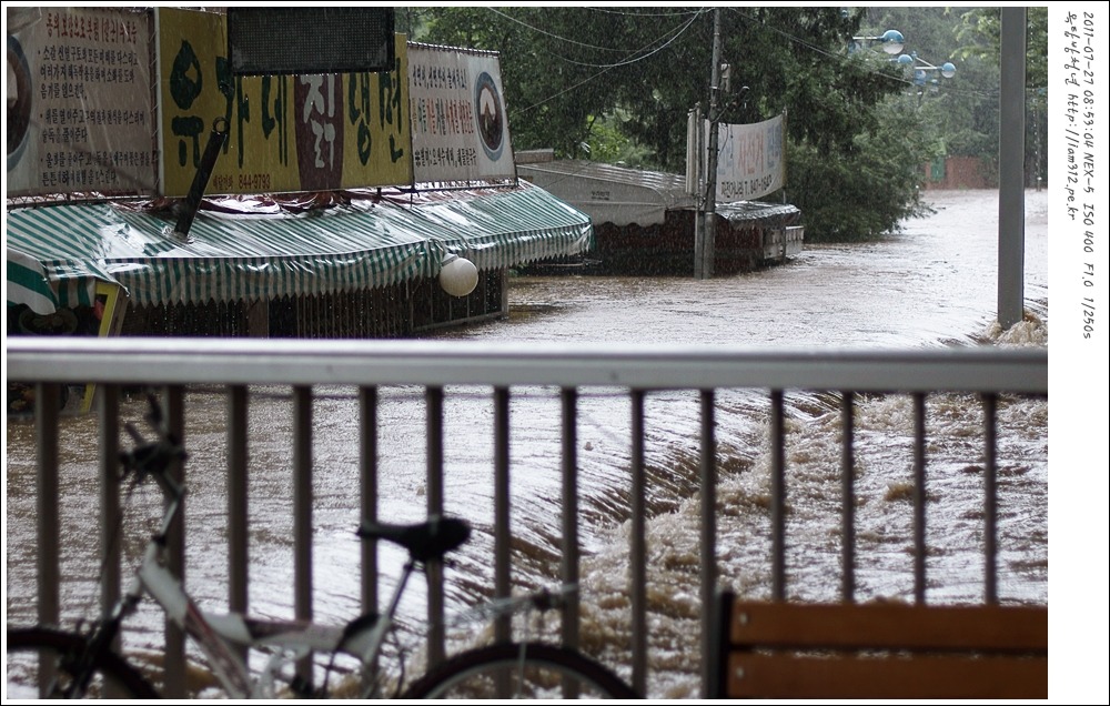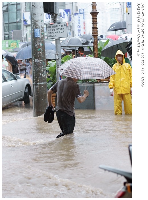 다행히 퇴근길엔 물이 빠졌지만, 침수된 집들은 다들 난리가 아니었다. 비 속에서 어느 아주머니가 우시면서 엉망이 된 세간 살이를 집밖으로 꺼내고 계셨다. 왠지 모를 죄송함에 그 모습을 찍을 수가 없었다.