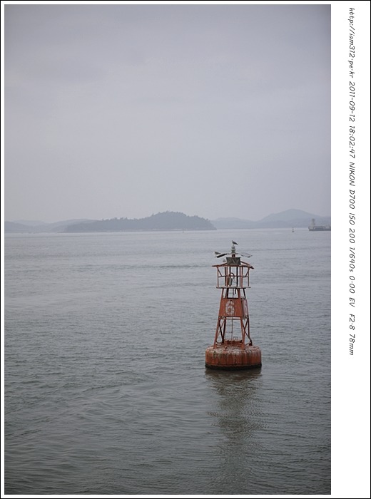 부표 등대 위에 앉은 이 갈매기들도 날아갈 생각을 않는다.