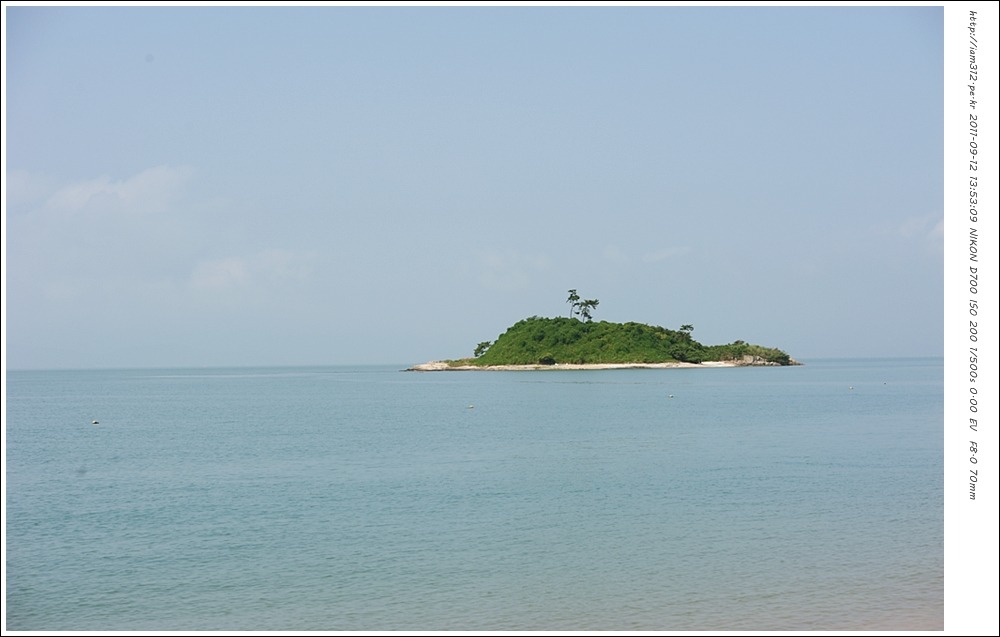 해수욕장 바로 앞에는 조그마한 섬이 하나 있다. 우리나라 답게 야자수 대신 소나무가 우뚝 서 있다.