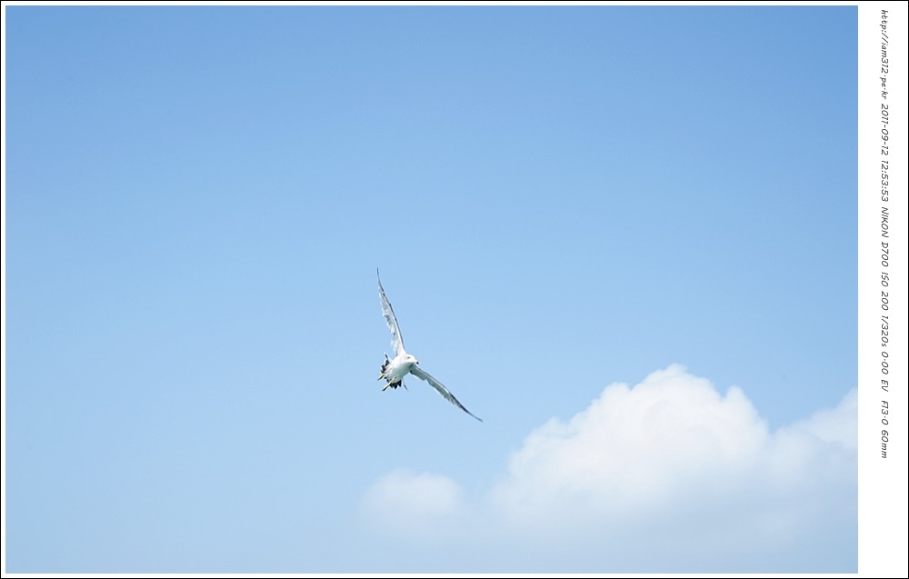 매제가 새우깡을 사서 던져주니 이 녀석들이 배를 따라 온다. 아직 강화도의 갈매기들 만큼 길들여지진 않아서 손에 쥐고 있는 새우깡을 낚아먹을 정도는 아니고, 바다에 떨어진 새우깡을 주워 먹는 정도였다.