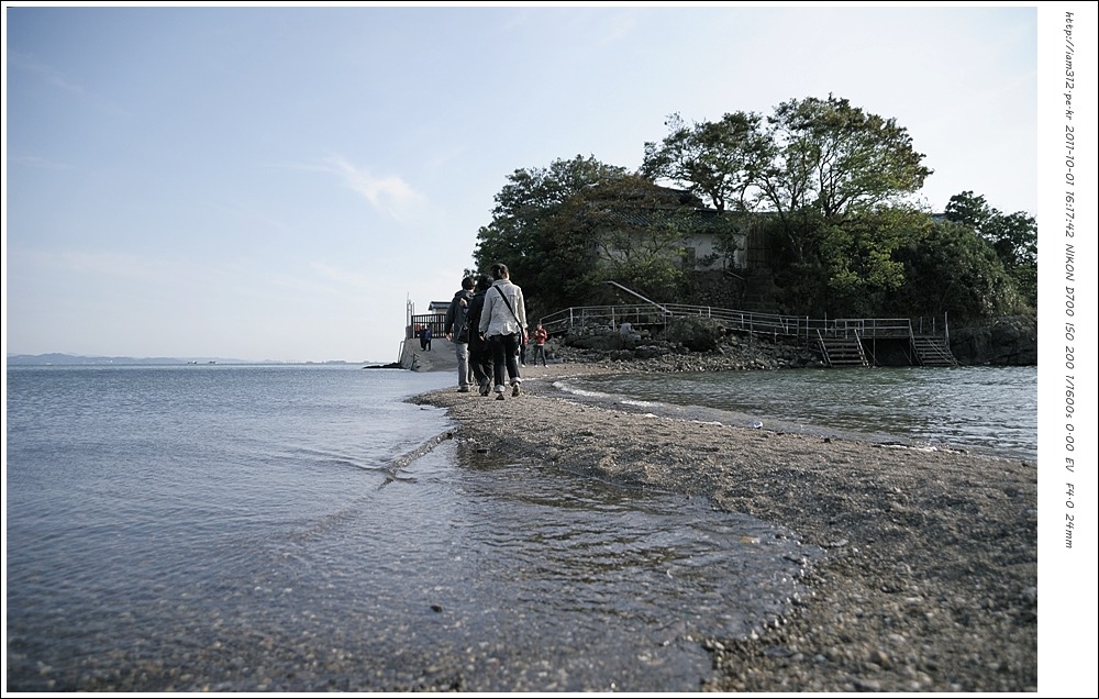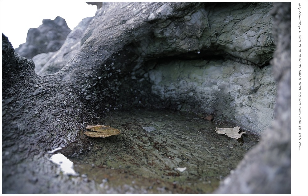 안면암의 부상탑이 있는 섬엔 이렇게 바위가 푹 패여 바닷물이 고여 있는 곳이 몇 곷 있다. 물이 참 깨끗한 것이 맛있어 보이지만 짜다.