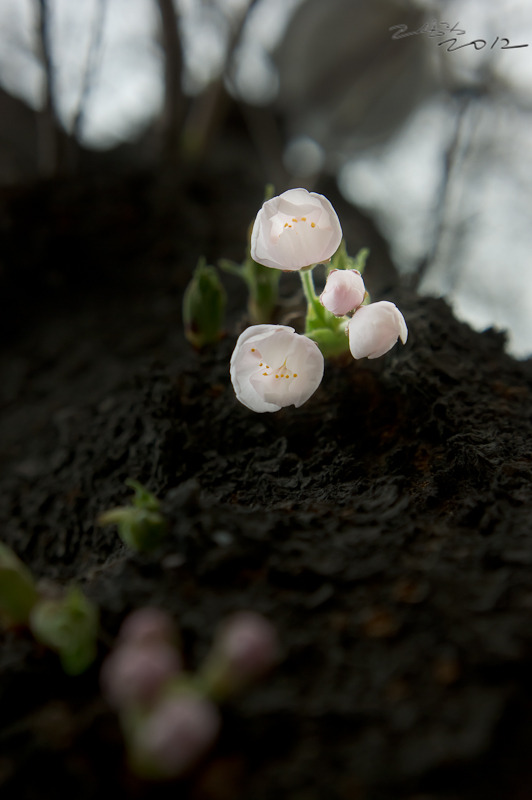 딱딱한 나무 껍질을 뚫고 꽃이 올라왔다. 거참, 신기하네…