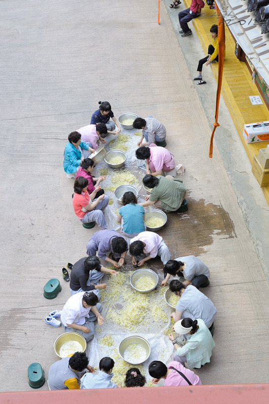 대량의 콩나물을 다듬으시는 중인데, 내일 아침 공양에 사용하시려나. 저녁 공양엔 안보였는데.