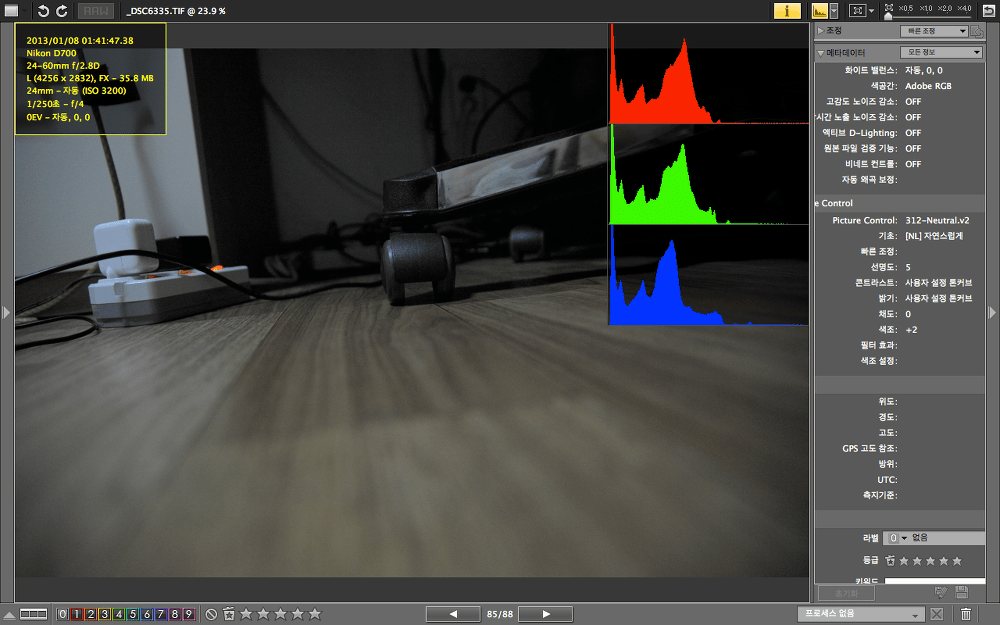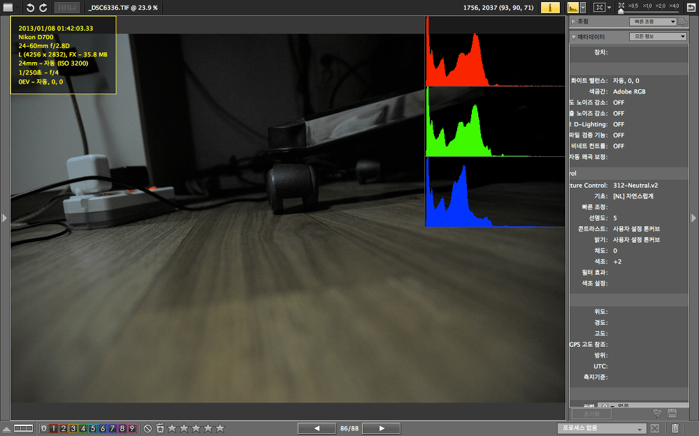 그렇다면 nef가 아니라 tiff로 저장을 하면 어떻게 될까.