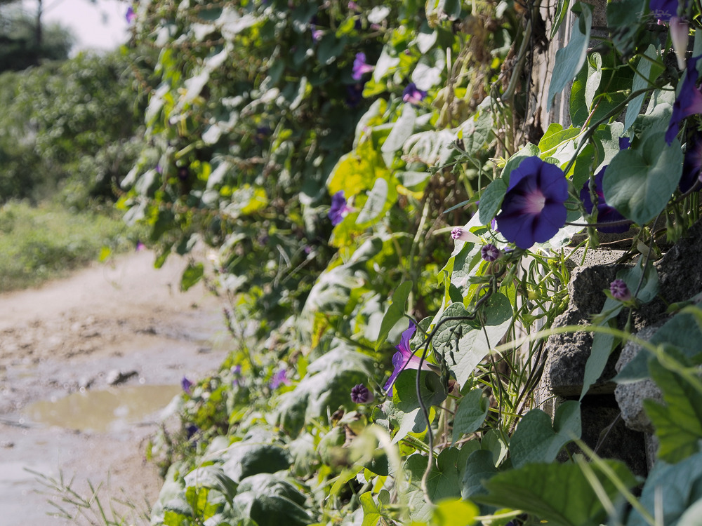 담벼락에 핀 나팔꽃을 얼마만에 보는지.