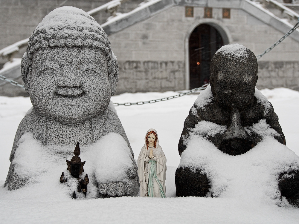 누가 갔다 놨을 까. 만약 교회에 저 부처상을 갔다 뒀다면 진작에 박살이 났을게다. 타종교에 배타적인 기독교의 교리가 씁쓸하기 그지 없다.