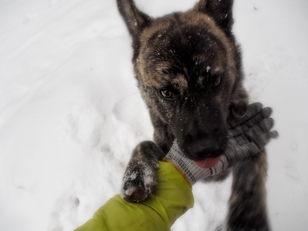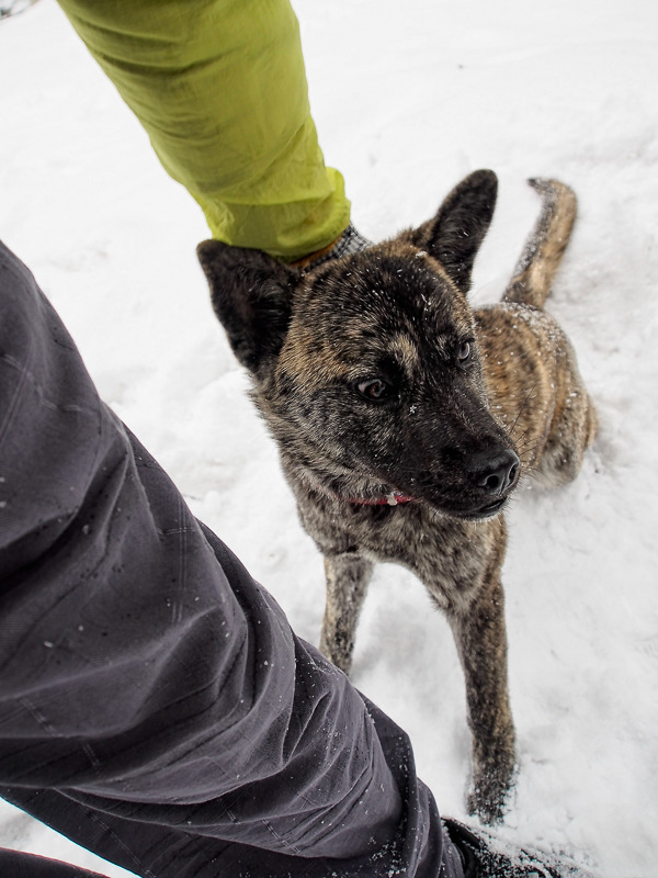 격하게 반기더니 다시 스님에게 미친 듯이 뛰어갔다. 눈이 오면 개들이 흥분해서 제정신이 아닌 것 같다.