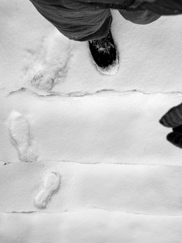 내가 올라오면서 만든 발자국 옆에 내려가는 발자국을 하나 더 낸다.
