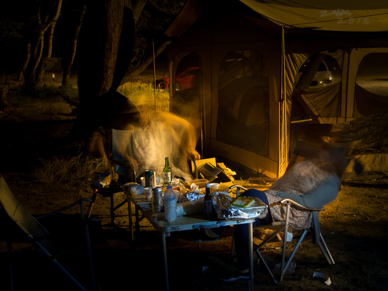 잘 준비 마쳐놓고 사진 좀 찍고 자리로 와서 맥주 한캔 마시고 있는데, 옆 텐트 부부가 와서 고기 같이 먹자 신다. 같이 앉아 이런저런 얘기 하다보니, 새벽 네시가 다 되가고, 아침에 일찍 서울로 올라가야 하니, 이만 자러 들어갔으나 아침엔 해루질 하고 온 분들의 장비 해체 소리에 7시에 일찌감치 잠이 깼다.