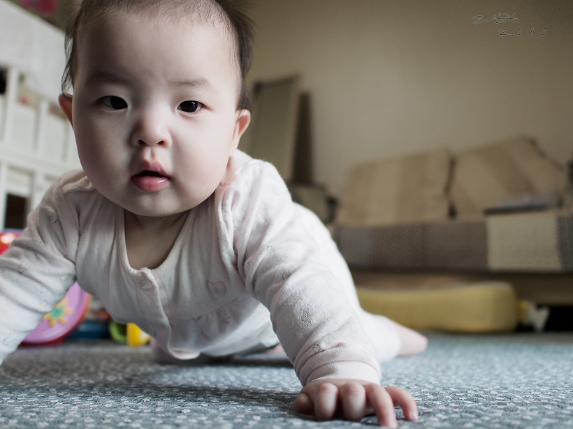 앉혀 놓으면 자연스럽게 중심을 잡고 앉아있다. 혼자 앉아 있다가 뒤로 넘어가는 일이 드물다. 무언가에 집중하다가 중심 잡는 것을 신경 못쓰고 가끔 뒤로 넘어가는 경우도 없진 않다. 물론 스스로 앉지도 못하고.