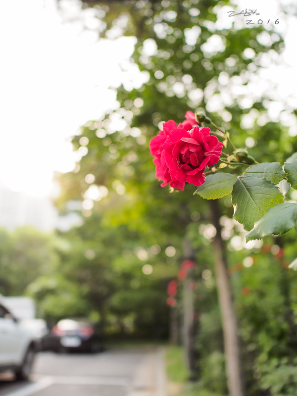 옆 동 주차장에 핀 장미는 종이 다른가… 무척 색이 진했다.