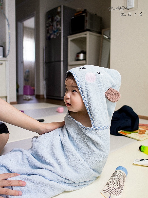 목욕하는 걸 무척이나 좋아하지만 수건으로 얼굴 닦기는 여전히 싫어한다.