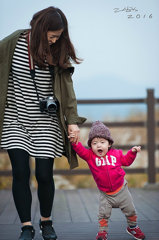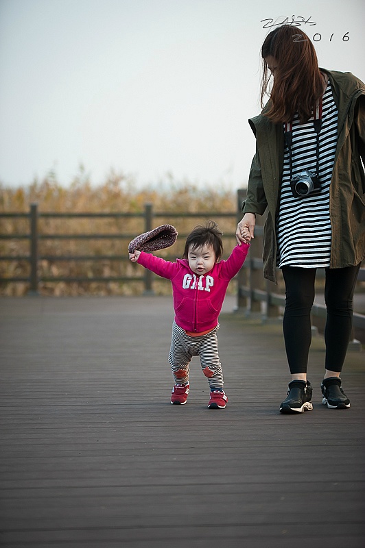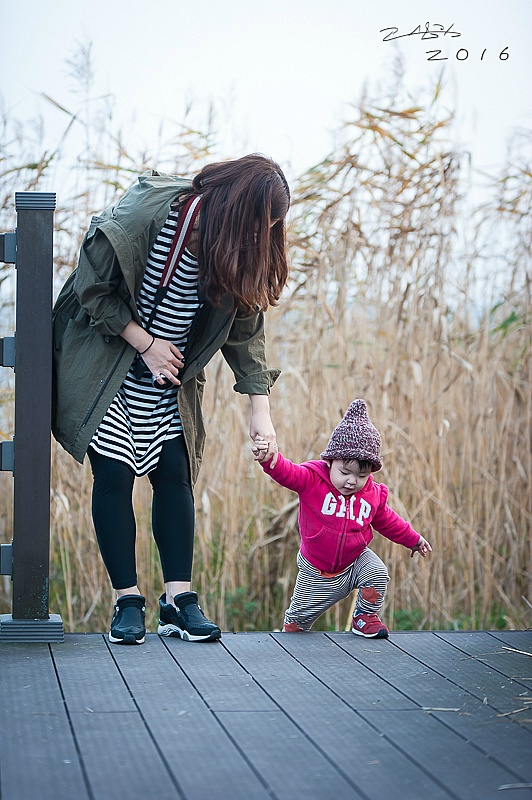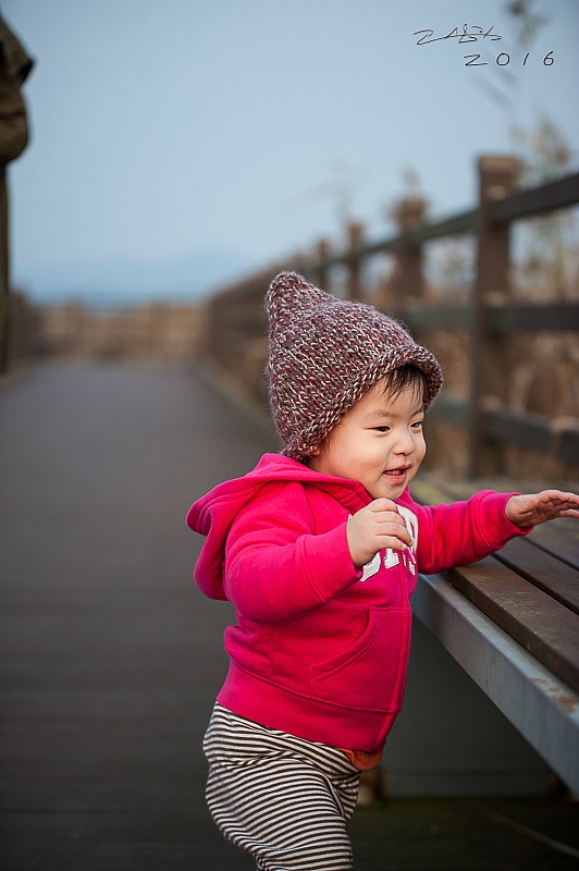 신상 모자 씌여서 세식구가 신성리 갈대밭으로 놀러 갔다.